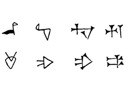 Enkla figurer blev till ett systematiskt bildspråk. Detta bildspråk förenklades och stiliserades. Hjälpmedel och material påverkade tecknens utseende och stilisering. Tecknen måste formas snabbt, eftersom leran torkade ganska fort.